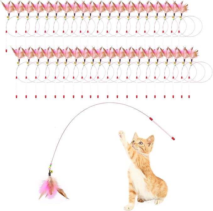 40 Pack Cat Feather Toy Wand, Interactive Pet Kitten Chaser Teaser Wire Wand with Bell Beads for Cat Exercise Play Fun Gifts - Wholesale