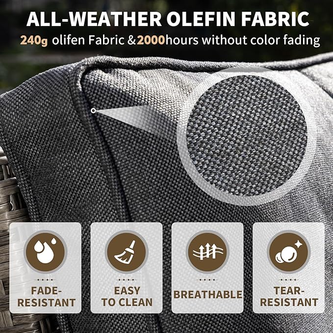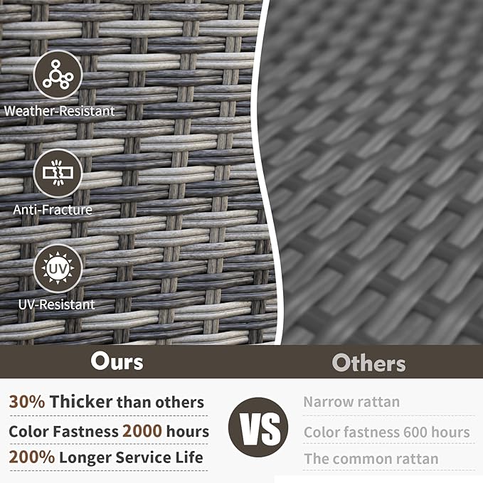 - All-Weather Use: Built with a powder-coated steel frame and hand-woven PE rattan, this outdoor patio furniture set is weather-resistant, rustproof, and built to last through all seasons