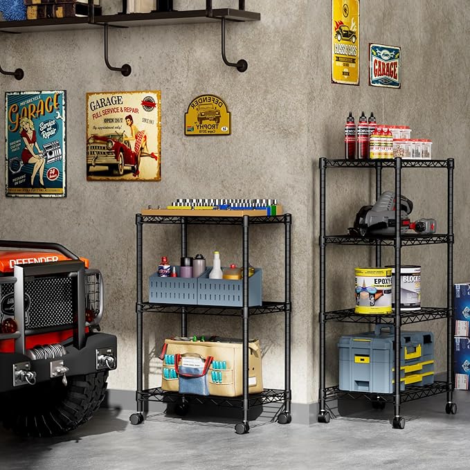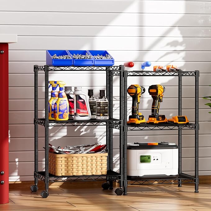 - Convenient Home Storage: Metal wire shelves with adjustable spacing make perfect for narrow spaces or room corners such as kitchens, bathrooms, laundry rooms, balconies, garages, entries, or offices.