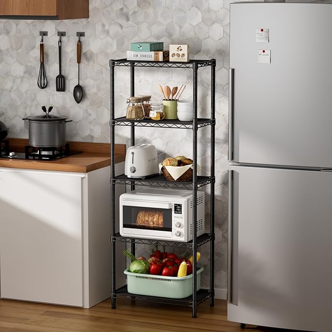 SINGAYE 5 Small Wire Shelves Kitchen Pantry Close Home Organizers and Storage Bathroom Shelf Laundry Room Organization Adjustable Book Metal Garage Shelving Unit