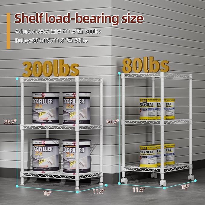 - Convenient Home Storage: Metal wire shelves with adjustable spacing make perfect for narrow spaces or room corners such as kitchens, bathrooms, laundry rooms, balconies, garages, entries, or offices.