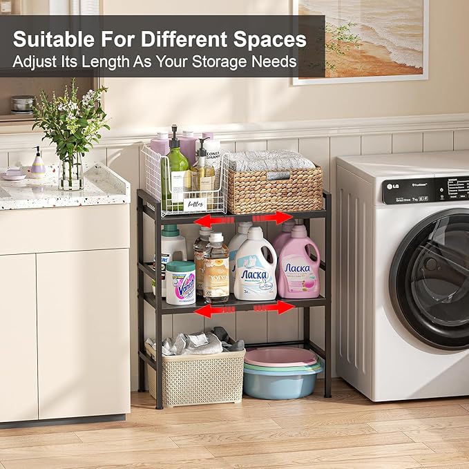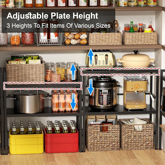 Expandable Metal Storage Shelves, 300 LBS Heavy Duty Metal Shelving Unit Rack For Pots And Pans Appliances Heavy Items, Adjustable 2 Tier Storage Shelf Rack Organizer For Kitchen Pantry Garage Laundry