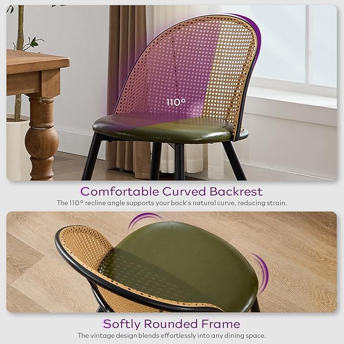 - Ergonomic Curved Backrest & Breathable Rattan Design: Experience lasting comfort with our 110-degree angled backrest engineered for perfect lumbar alignment. The hand-woven rattan panel ensures continuous airflow during extended dining sessions, merging mid-century modern chair aesthetics with practical functionality. Ideal as versatile chairs for dining table setups in both casual and formal spaces.
