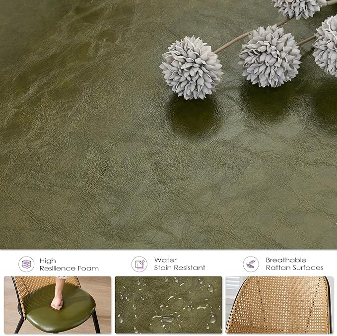 TYBOATLE Rattan Dinner Chairs Set of 4 with Faux Leather Cushion, Modern Dining Room Chairs w/Adjustable Foot Pads, Kitchen Boho Mid Century Upholstered, Green