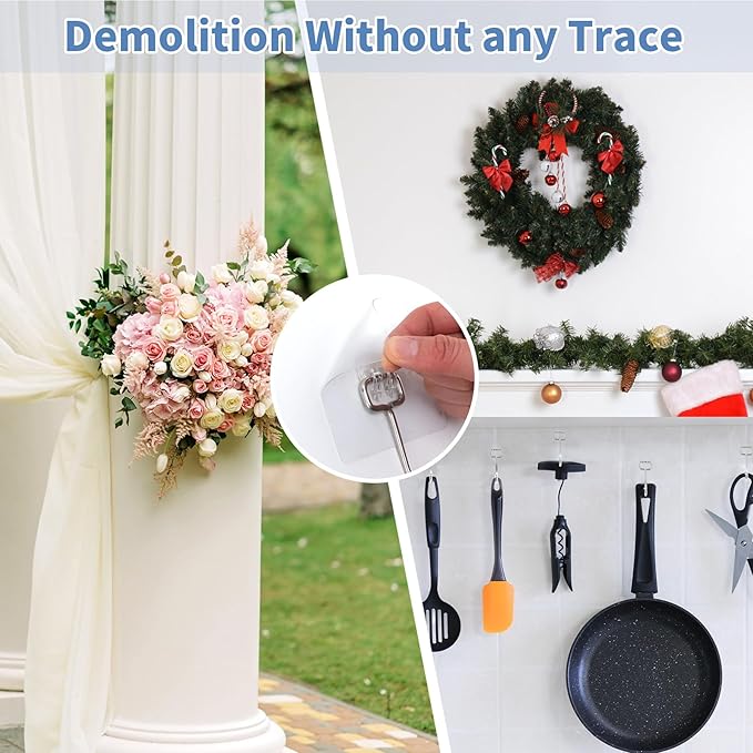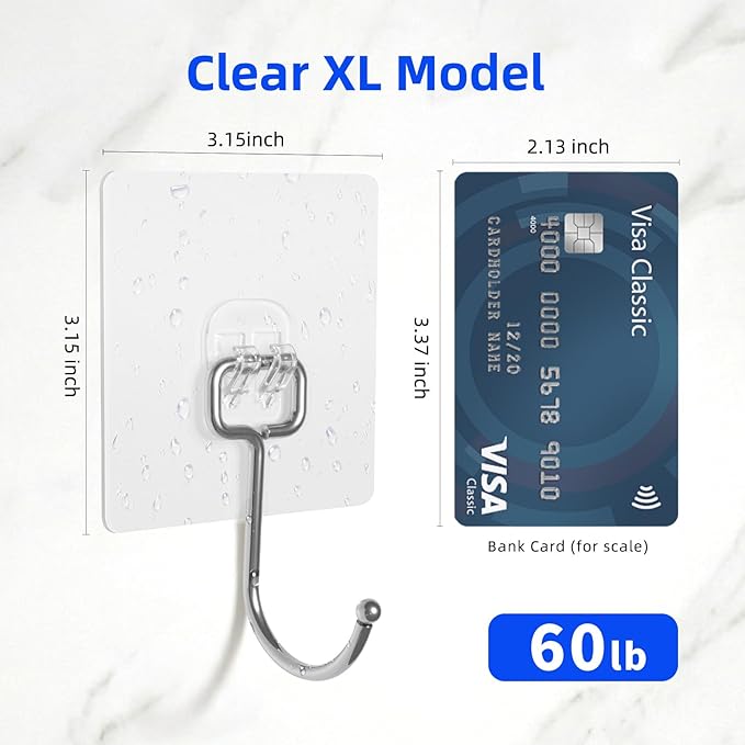 - "【Heavy-Duty Wall Hooks Adhesive - 60lb Max Load】 Industrial-grade wall hooks heavy duty with stainless steel hooks & 8cm×8cm PVC pads hold 60lbs. Wall hooks adhesive grips tile, drywall, or painted walls—zero damage. Perfect for kitchens (pots), garages (tools), or heavy decor."