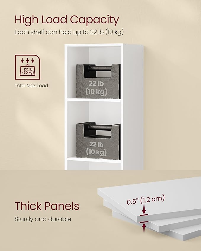 - 【STURDY, STABLE, SAFE】Constructed from premium particleboard and MDF, this robust bookshelf can support up to 22 lb per tier. The H-shaped structure and slot-in back panel augment stability, while the included anti-tip kit ensures safety