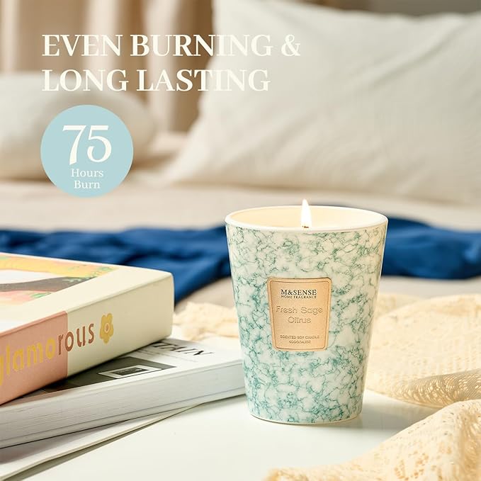 M&SENSE Fresh Sage Citrus Scented Soy Candle, 3 Wick Highly Scented 14.1 Oz 80H, Aromatherapy Christmas Gift for Women and Men