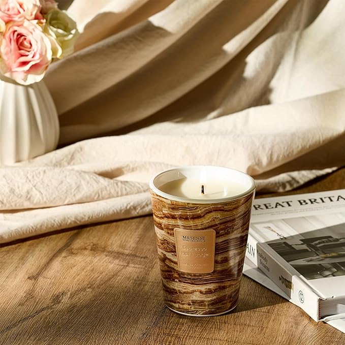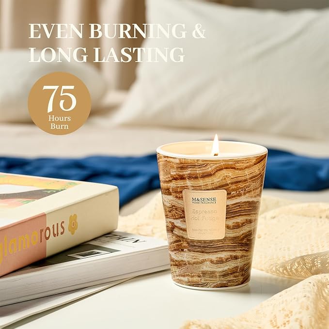 M&SENSE Espresso Hot Fudge Scented Soy Candle, 3 Wick Highly Scented 14.1 Oz 80H, Aromatherapy Christmas Gift for Women and Men