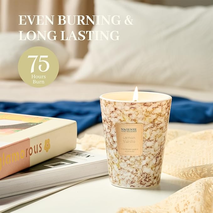 M&SENSE Lemon Vanilla Scented Soy Candle, 3 Wick Highly Scented 14.1 Oz 80H, Aromatherapy Christmas Gift for Women and Men