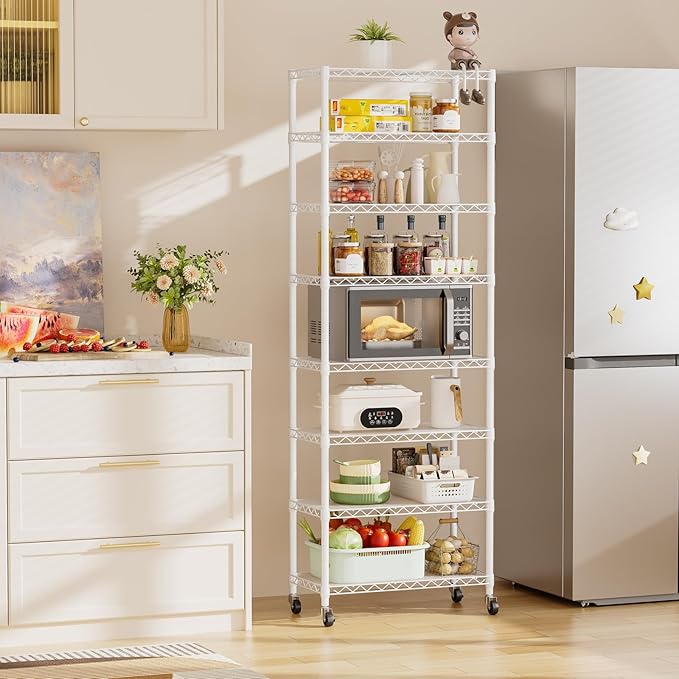 SINGAYE 8 Tier Shelf Organizer Storage Metal Shelves Garage Wire Shelving Unit Pantry Rack Adjustable Standing Storage for Kitchen Closet Laundry Bathroom Pantry 12" D x 22" W x 74" H White