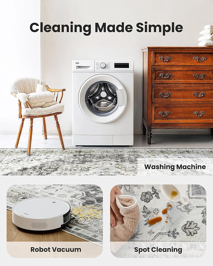 - Machine Washable: The short pile design of this washable rug is easy to maintain using an upright vacuum or robotic vacuum cleaner. The area rug is also machine-washable for fast and hassle-free cleaning. After washing, a low-temperature iron can help to keep the living room carpet’s surface flat and smooth.