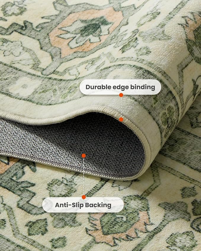 AMADA HOMEFURNISHING 9x12 Area Rug, Washable Low-Profile Large Area Rug with Non-Slip Backing & Durable Edge Binding, Vintage Large Rugs for Living Room, Bedroom