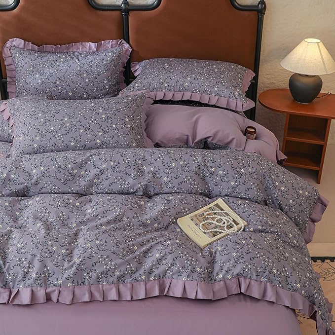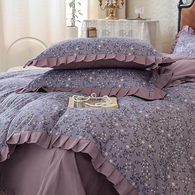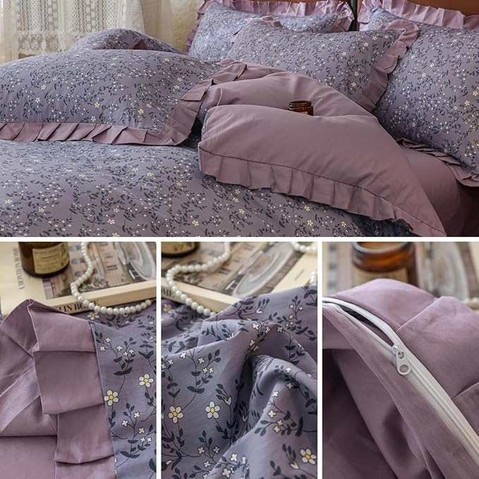- 【Premium Material】- Vintage purple floral ruffle duvet cover set made of 100% cotton fabric creates a new standard of soft and comfortable sleeping experience, exceptionally cozy, naturally soft and breathable, comfortable, lightweight and skin-friendly. Chic garden style vintage botanical flower bedding set is perfect for all seasons use.