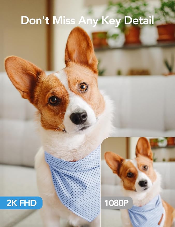 - 【Work with Alexa & Easy to Set Up】: The indoor camera is compatible with Alexa and Google Assistant. Pair the wifi camera with Alexa or Google Assistant, then use a simple voice command to ask Alexa or Google Assistant to view your live camera feed. The security camera is also easy to set up, just follow the detailed instructions on the app. Make sure the pet camera is connected to Wifi within a 3 feet range. Please note that the 2K indoor camera only supports 2.4Ghz WiFi, not 5Ghz WiFi