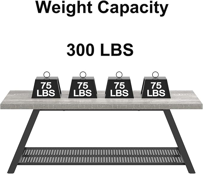 FOLUBAN Industrial Coffee Table, Rustic Wood and Metal Center Table with Storage, Modern Rectangle Cocktail Tea Table for Living Room Office, Light Grey, 47 Inch