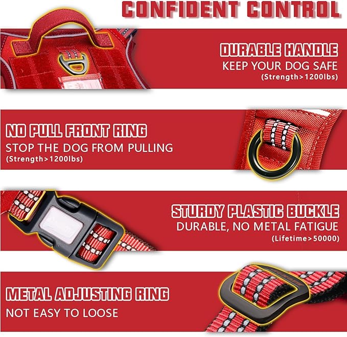 AUROTH Tactical Dog Harness for Large Dogs No Pull Adjustable Pet Harness Reflective K9 Working Training Easy Control Pet Vest Military Service Dog Harnesses Red M