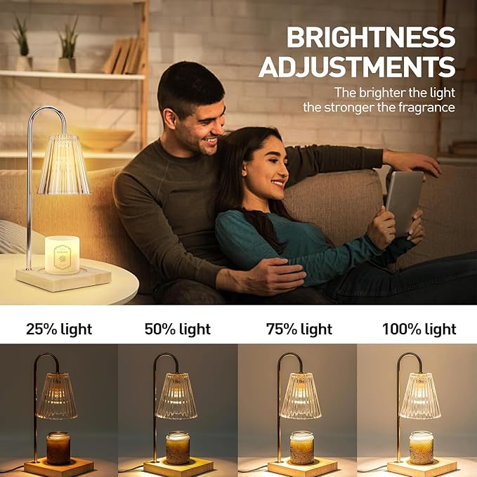 - ✅【Versatile Lighting Options】 This candle warmer lamp features four brightness levels, allowing you to create different atmospheres by adjusting the light intensity. The height-adjustable design accommodates candles up to 5.9 inches, enabling you to control the scent strength.