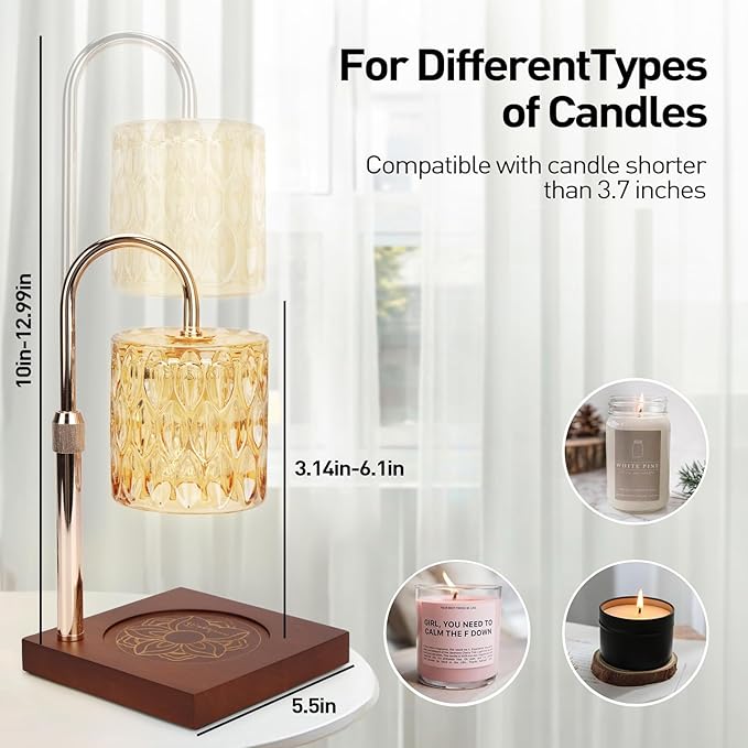 - ✅【Versatile Lighting Options】 This candle warmer lamp features four brightness levels, allowing you to create different atmospheres by adjusting the light intensity. The height-adjustable design accommodates candles up to 5.9 inches, enabling you to control the scent strength.