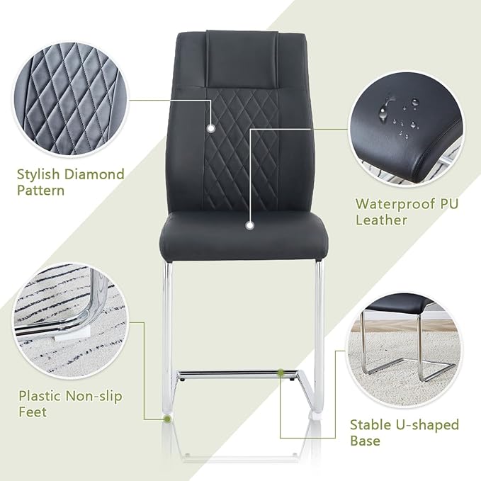 - Glass Dining Room Table Set:Upgrade your dining space, featuring a tempered glass tabletop that is easy to clean. The luxury silver base and Black PU leather chairs add a contemporary touch, making it perfect for both home and apartment use