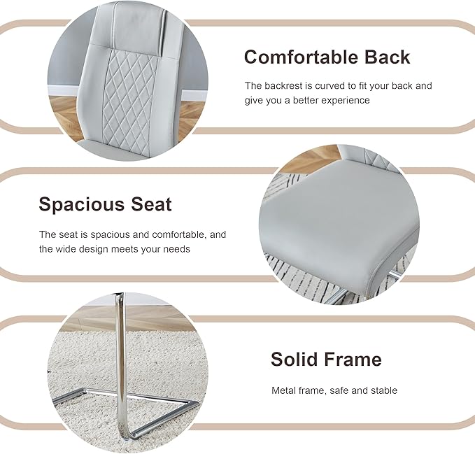 - Glass Dining Room Table Set:Upgrade your dining space, featuring a tempered glass tabletop that is easy to clean. The luxury silver base and Light Grey PU leather chairs add a contemporary touch, making it perfect for both home and apartment use
