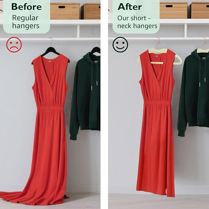 - [Stackable & Charming]: The stackable short neck hangers with 6 free empty aromatherapy boxes (Not including aromatherapy). You can place your favorite aromatherapy diffuser pads into Aromatherapy Boxes to make your clothes emit a charming smell