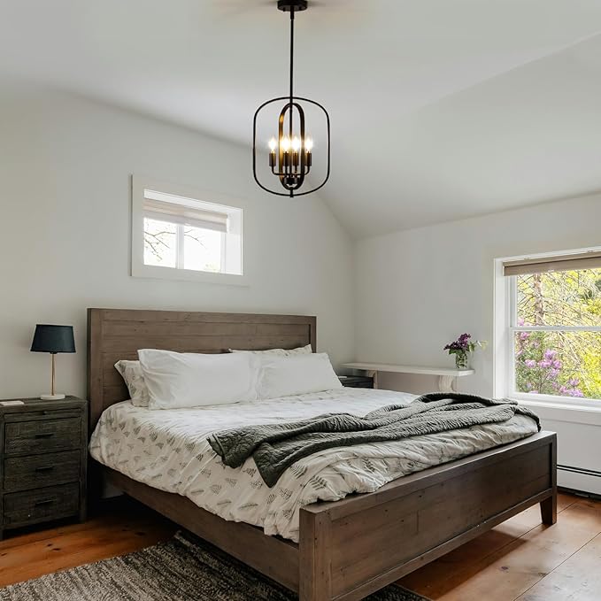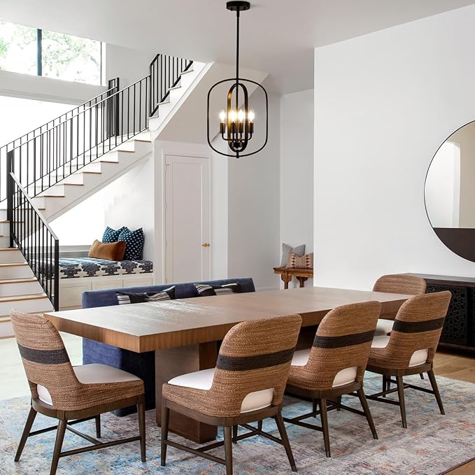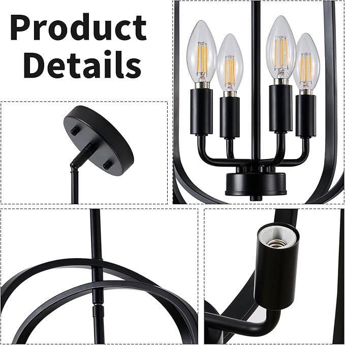 - Black Chandelier Light Fixture ——The simple silhouette of this farmhouse foyer light is composed of a sturdy black metal frame, showcasing a classic minimalist aesthetic. The lantern shaped small chandelier casts a mesmerizing light in the room, creating the ideal ambiance to make a lasting impression. This minimalist and stylish style is suitable for a wide range of home houses and is ideal for dining light fixture, kitchen chandelier, and foyer chandelier.