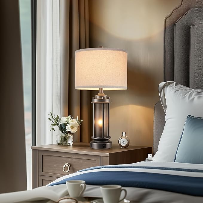 - Industrial and Vintage Lamp: The AIEAMPDO living room table lamp has a clean, modern design that enhances any room. Its grey metal base, soft linen shade, and frosted glass night light create a warm and pleasant atmosphere. The linen shade softens the light, providing a natural and soft lighting experience suitable for various styles like industrial, modern, farmhouse, vintage, and classic.