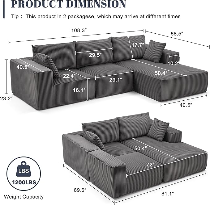 - Multiple Package: Multiple packages may arrive separately. If you have any questions about your cloud couch sectional or need assistance, please reach out to us as soon as possible