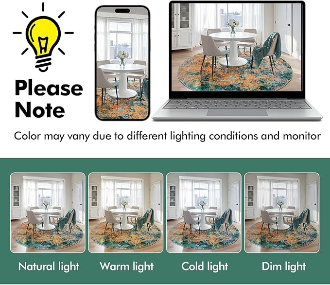 6ft Round Area Rug for Living Room- 6x6 Washable Neutral Abstract Rug for Bedroom Modern Soft Dining Room Rug No Slip Low Pile Carpet for Nursery Home Office Decor - Teal/Orange