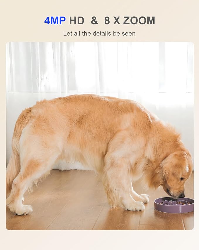 - Latest Upgraded 2.5K Resolution & 360° Coverage: With 4MP resolution and 355° pan & 115° tilt, You can remotely rotate Pet camera with phone app to watch riveting footage of your puppy snoozing, or you might solve the mystery of why there’s fur on the kitchen counter. cameras for home security.inside cameras for house.