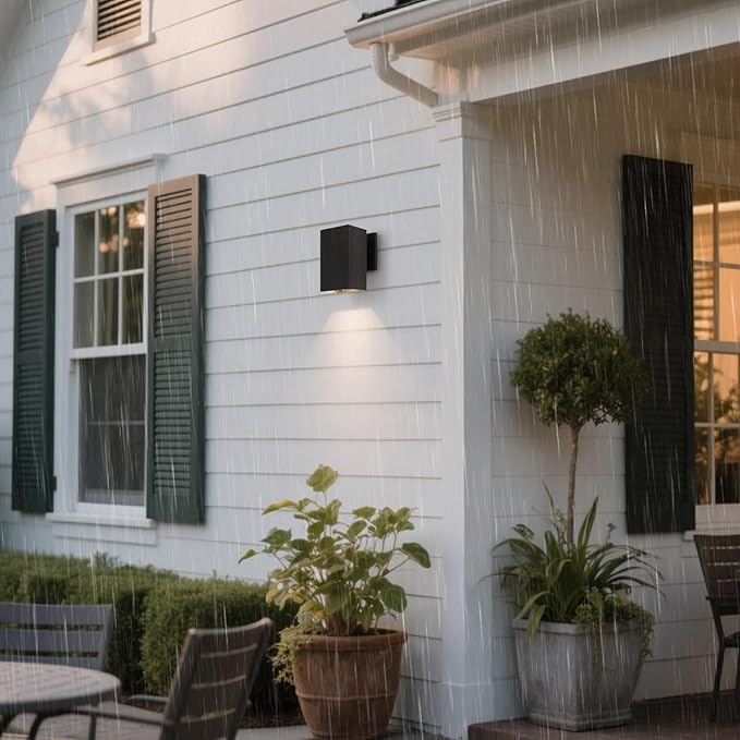 mirrea 7-inch Outdoor Porch Wall Light for House, Waterproof Exterior Sconce for Patio, Wall Mount Lighting Fixture for Front Door, Matte Black Rectangular Downlight for Garage, Set of 2