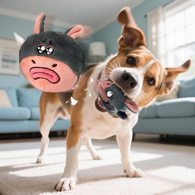 - 3-In-1 Interactive Dog Toys – Built for strong chewers, this squeaky ball toy delivers durable, long-lasting engagement. As dogs bite through the outer plush layer, they discover a hidden secondary plush toy and a squeaky spiked ball inside. Each layer offers distinct textures and auditory stimulation, promoting prolonged chewing and sensory enrichment to support dental health and reduce boredom.