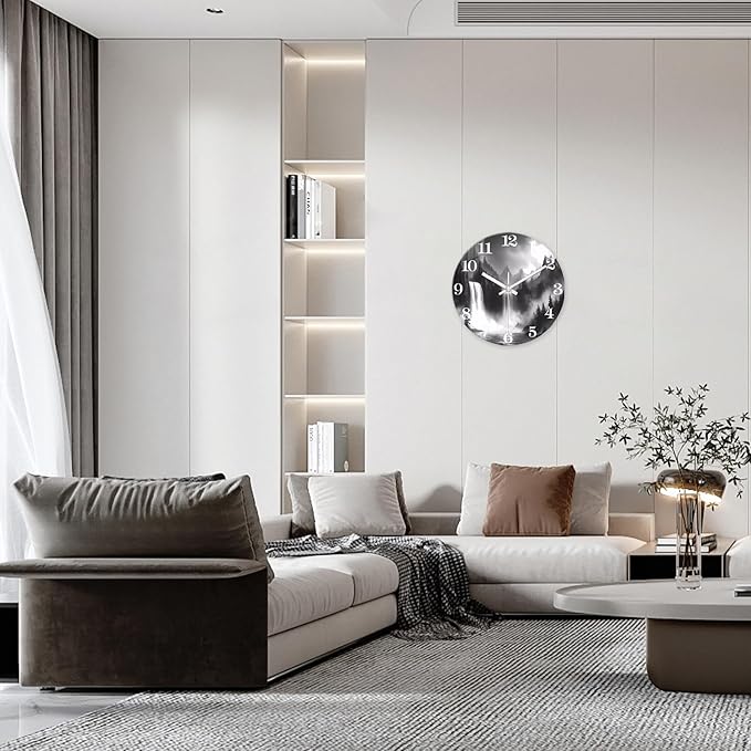 - 1.[Size] - The natural landscape wall clock is 20 inches x 20 inches,HD glass wall clock,frameless analog wall clock,round wall clock for bedroom,decorative wall clocks for living room,big wall clock for bathroom,quiet wall clock for office,decorative wall clock for kitchen.