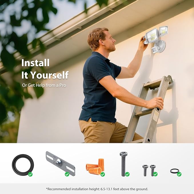 - 10000LM Super-Bright Output: Experience day-like clarity with 10,000 lumens of 6500K daylight—perfect for illuminating large driveways, gardens, or commercial spaces while enhancing security