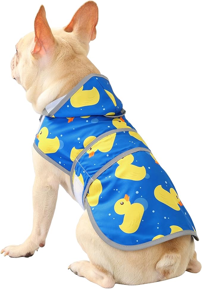 Dog Raincoat for Medium Dogs Waterproof Hooded Rain Jacket with Reflective Strips Leash Hole & Poncho Adjustable Fit (ShinyDuck,M)