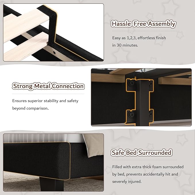 - Special Feature : Easy Assembly, Noise-Free, Upgraded Heavy-Duty Structure, Upholstered Headboard