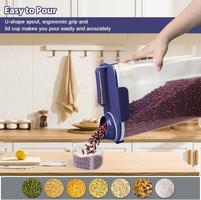 - 🍚【Well-Conceived Rice Storage Container】The airtight rice container 10lbs adopts Ergonomic handle and groove body to meet your one hand operation requirement. Its slim shape helps save space. And comes with measuring cup and pour spout, making every pouring neat and clean. Multi user- friendly designs, dedicated to your satisfaction.
