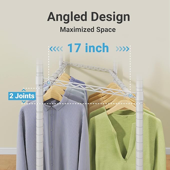 - 2-Sided Adjustable Hanging & Shelves: Features double hanging rods (front and back) at staggered heights to prevent clothes overlapping. Three height-adjustable wire shelves accommodate folded clothes, shoes, or storage bins. Maximize your space with this versatile closet rack.