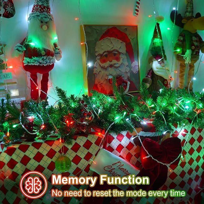 - Brighter Red White Green String Lights: Red white green string lights with 500 LEDs, which are enough to to meet your needs for large area decor, no need to extend. When decorate outdoor, plug in the socket, no battery is needed. You can also fold it up and hang it to feel the cozy and warm atmosphere night with your family, friends or lover.