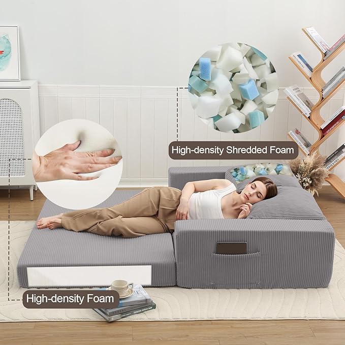 - Space-Saving Solution: Maximize your living space with our floor sofa couch. This sleeper mattress is ideal, ensuring you never have to sacrifice comfort for space. The clever design used fits seamlessly into any room without overwhelming it