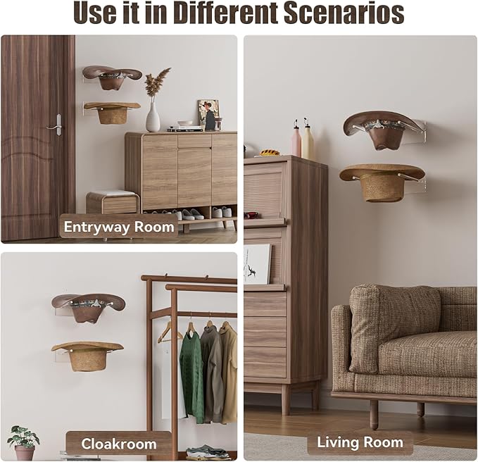 - 【Multi-Purpose Cowboy Hat Rack】- From Rodeo to Resort, Securely holds cowboy hats, fedoras, sun hats, and even kids’ caps. Suitable for large brimmed hats of different sizes.