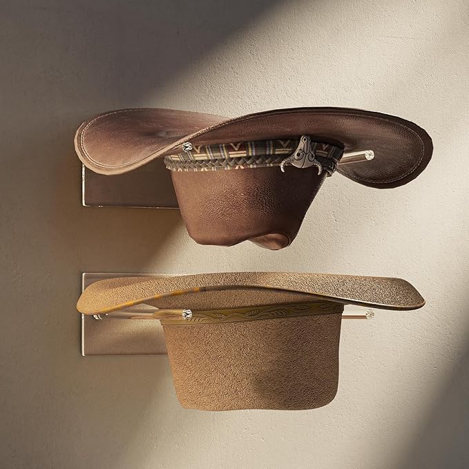 Cowboy Hat Rack for Wall: 2 Pack Acrylic Hat Holder Organizer - Western Rustic Wall Mounted Hat Hanger Stand for Cowboy Hat, Fedora, Sun Hats