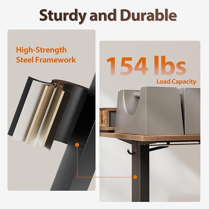 - 【Durable Steel Frame & Advanced Motor System】This desk supports up to 154 lbs with a reinforced steel frame and premium motor. It can deliver rock-solid stability for multi-monitor setups and heavy-duty use.