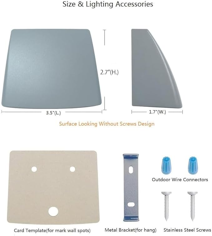 - 【EASY TO INSTALL】Just hang the light fixture at the ready metal bracket.The UL listed 18 AWG SPT-1 leading wires can be hidden in the cavity of the fixture back or, just get straight down from the frame slot.These accessories including wire connectors,stainless steel screws ,convenient cardboard template for drilling points to fix the kit.All these landscape lighting accessories,just make it easy to install