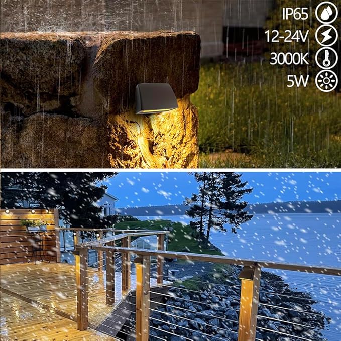 - 【SAFE 12-24V AC/DC WALL LIGHTS】Wide low voltage 12-24V,works for more outdoor lighting applications.This new outdoor deck lighting capable of working with most low voltage landscape lighting systems with weatherproof,anti-corrosion functions.Low voltage transformer required (Not included)