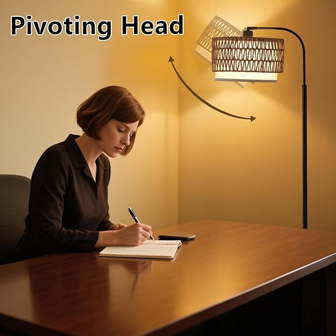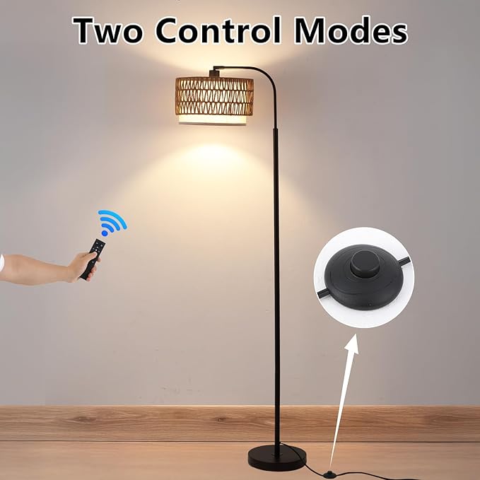 - 3-in-1 Standing Lamp with Double Drum Shade: This boho rattan floor lamp comes with a hand-worked woven rattan and linen drum lampshade, has 3 display effects. The removable lampshade can be freely combined according to your preference. The floor lamp is supremely versatile no matter where you place it, you could use it as a reading lamp,office lamp or lamp for living room