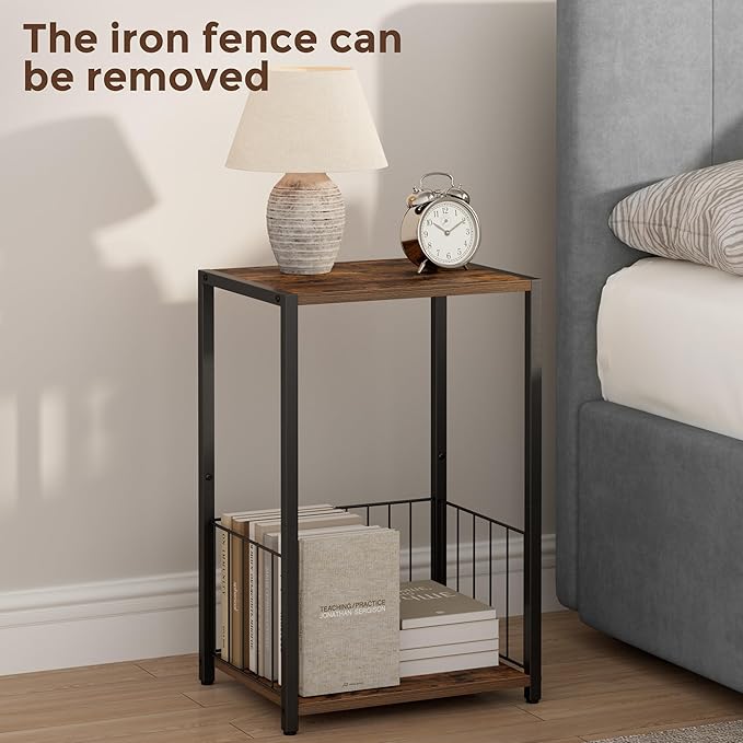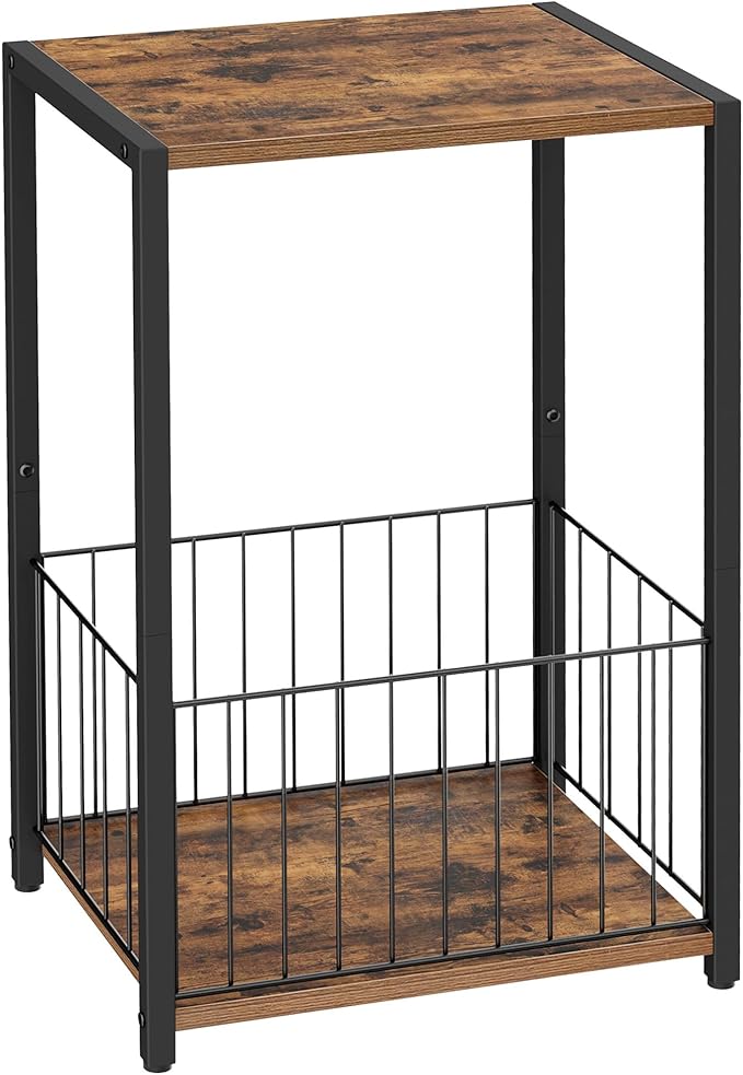 Side Table with Magazine Holder, Record Player Stand with LP Shelf, End Table for Living Room, Bedroom, or Bedside, Easy Assembly, 11" D x 16.9" W x 23.6" H, Rustic Brown