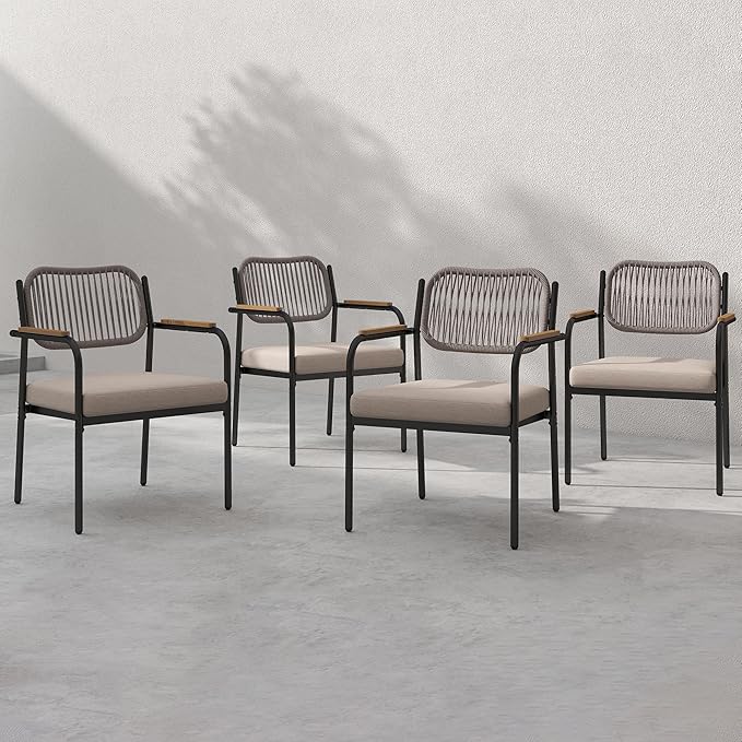 - Stylish and Chic: This outdoor dining chair is measured 22.75"W x 22.5"D x 32.75"H with hand rattan rope that blends modern aesthetics looks and durable performance, ideal for outdoor dining and lounging