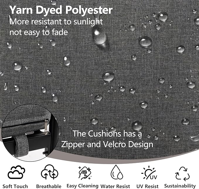 - Hidden Zipper Design: The cushion covers for our lawn chairs come with concealed zipper, blending elegance with protection while allowing you to maintain your outdoor furniture with ease