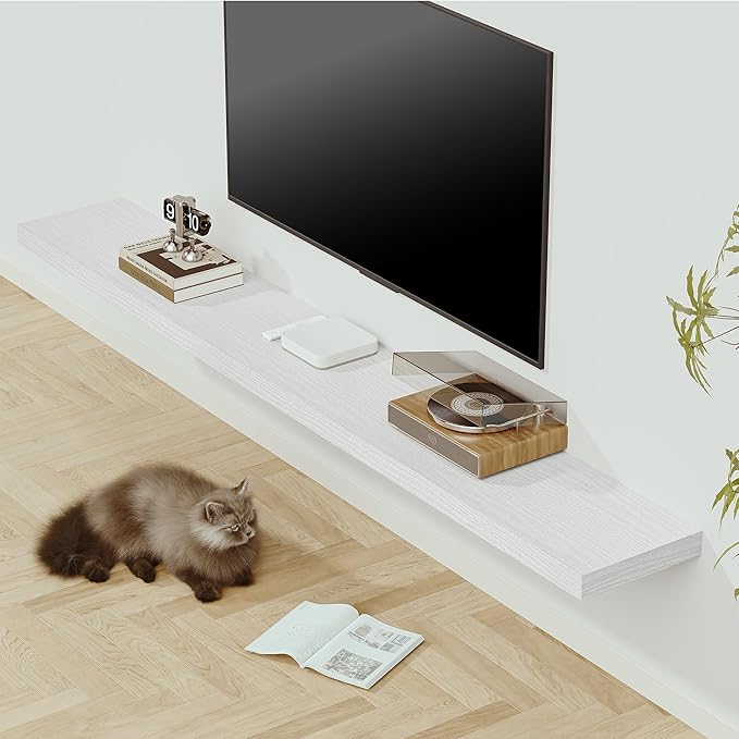 Vivelove 12 in Deep Floating Shelves for Wall, 72" x 12" x 2" Shelves for Room Wall Mounted, 2 Inch Thick Shelf for Bathroom Bedroom Kitchen Book Room, Modern Farmhouse Decor, Set of 1, White